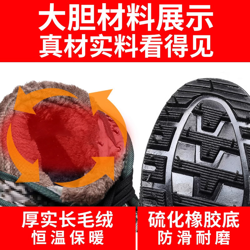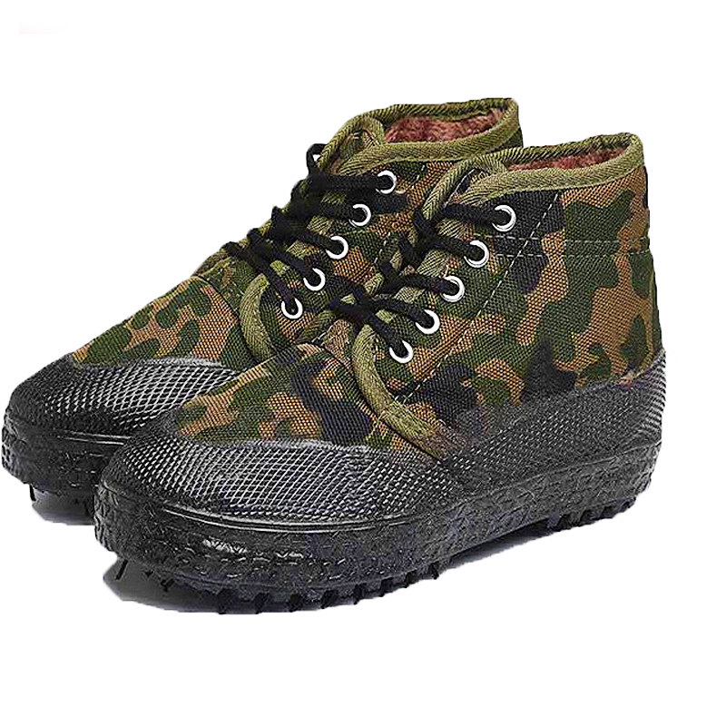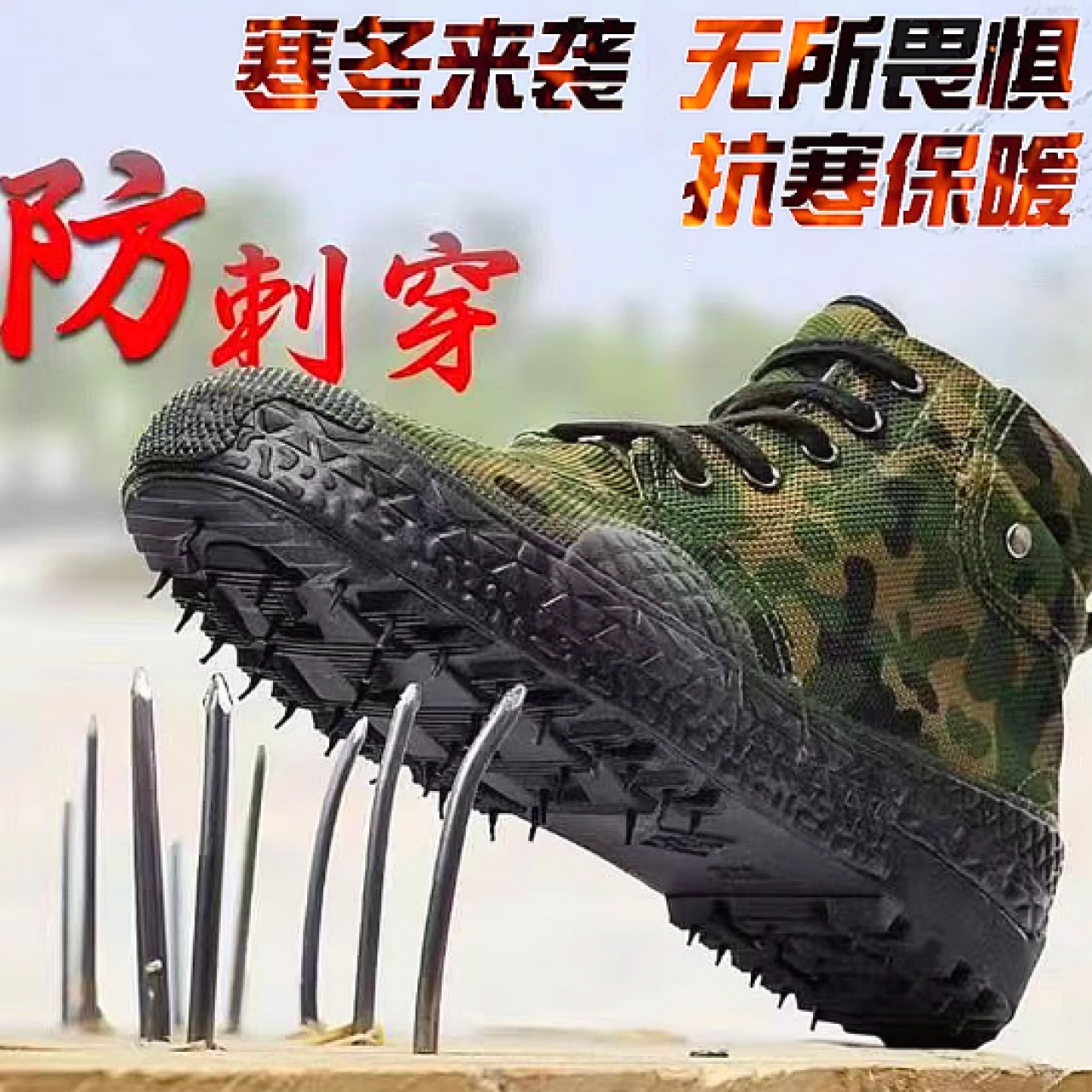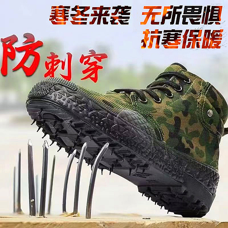 防刺加绒棉鞋劳保鞋工地高帮迷彩胶鞋