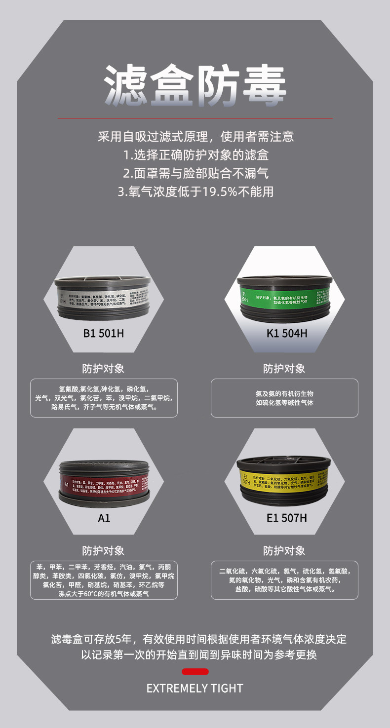 自吸过滤式防毒面具全面罩化工气体
